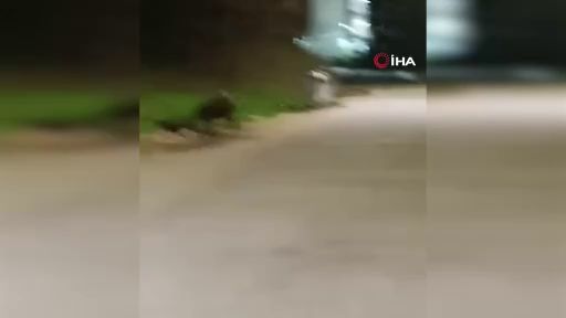 Bursa'da gece saatlerinde mahalleye inen domuz sürüsü yiyecek aradı. O anlar cep telefonu kamerasına yansıdı.