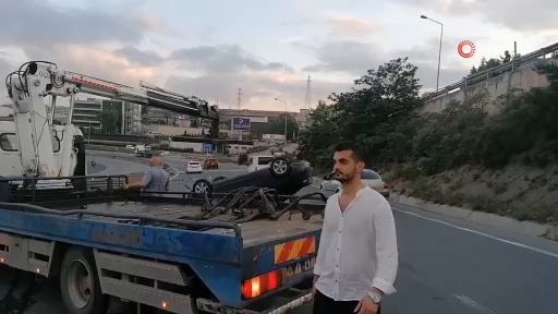 Kocaeli’de D-100 karayolunda lastiği patlayan otomobil kontrolden çıkıp bariyerlere çarparak takla attı. Karşı şeride geçen otomobilin sürücüsünün burnu bile kanamadı. Kazada sürücünün eşi ve çocuğu ise yaralandı.