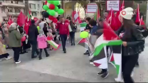 Burgaz Gençlik ve Yardımlaşma Derneği üyeleri, "Filistin özgürlüğü için gökyüzüne ses veriyoruz" sloganıyla Mudanya’da yürüyüş düzenledi.