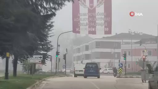 Bursa'nın İnegöl ilçesinde sabah saatlerinde etkili olan sis, görüş mesafesini düşürdü.