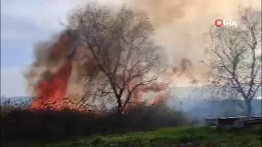 Bursa'nın İznik ilçesinde sazlık alanda çıkan ve rüzgarın etkisiyle büyüyen yangına ekiplerin müdahalesi sürüyor.