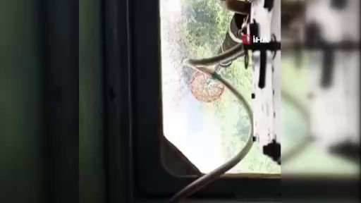 Bursa’nın Mudanya ilçesinde makilikte çıkan yangın, ekiplerin çalışmasıyla kontrol altına alındı. 5 dönüm alanın zarar gördüğü yangın, alevlere müdahale eden helikopterden görüntülendi.