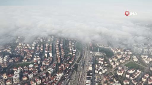 Bursa'da sabah saatlerinde etkili olan sis nedeniyle şehrin yarısı, gözlerden kaybolurken çekilen dron görüntüler film sahnelerini aratmadı.
