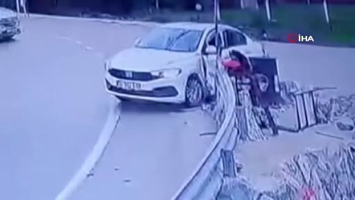 Bursa Uludağ yolundan şehir merkezine seyreden bir otomobil virajı alamayarak bariyerlere çarptı. O anlar güvenlik kamerasına yansıdı.