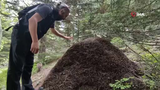 Bursa Uludağ'da karıncaların yaptığı boyu metreyi bulan yuvalar, mangal kömürü ocaklarını andırıyor. Dev yuvalar görenleri hayretler için bırakıyor.