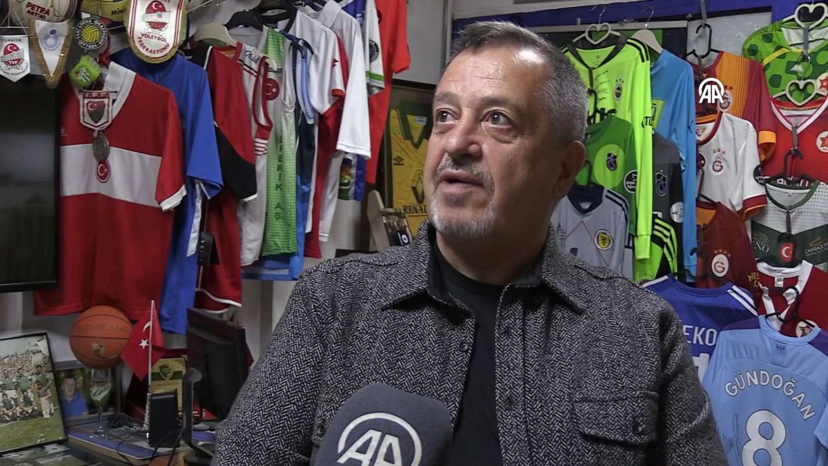 Bursa'da 40 yıldır oto lastik işiyle geçimini sağlayan Mehmet Ceylan, yıllardır biriktirdiği çeşitli kulüplere ait onlarca formayı iş yerinde sergiliyor.