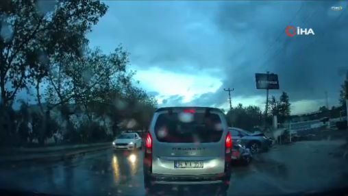 Bursa'nın Orhangazi ilçesinde sabah saatlerinde meydana gelen trafik kazasında, emniyet şeridinde ilerleyen motosikletin iş yerine girmek üzere manevra yapan otomobile çarpması sonucu 2 kişi yaralandı. Kaza anı güvenlik kamerasına saniye saniye yansıdı.