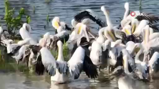 Her yıl bahar mevsimde Afrika kıtasından göçüp üremek için Romanya'nın Tuna deltasına giden Ak pelikanlar Uluabat Gölü'nde mola verdi. Afrika'nın tozundan ve yol yorgunluğundan Ulubat Gölü'nde banyo yaparak arınan ak pelikanlar dron görüntüsüyle görsel şölen oluşturdu.