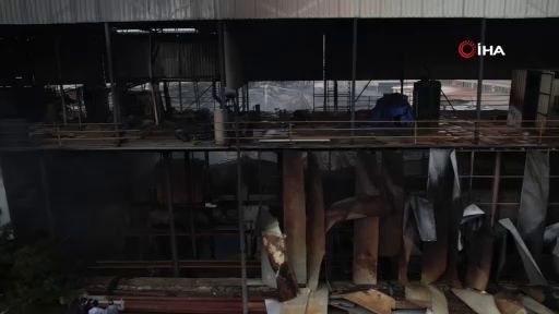 Bursa'da gece alevlere teslim olan fabrika sabahın ilk ışıklarıyla böyle görüntülendi