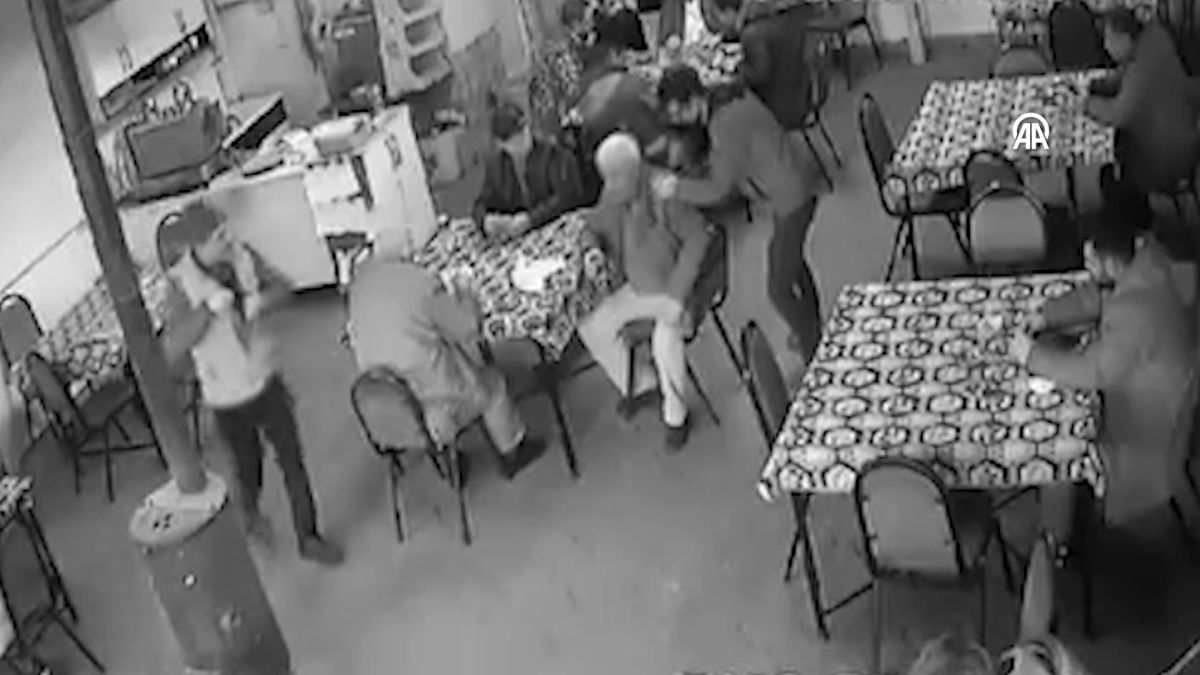 Bursa'da kahvehanede çay içtiği sırada nefes borusuna cisim kaçan kişi, yakınında bulunanlardan biri tarafından 'Heimlich manevrası' ile kurtarıldı. O anlar, güvenlik kamerasına yansıdı.