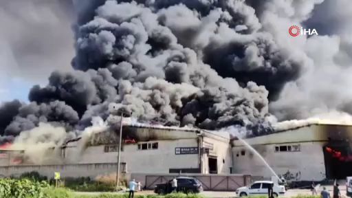 Bursa'da iplik ürettiği belirtilen fabrikada yangın çıktı. Fabrikadan yükselen yoğun duman gökyüzünü kaparken ilçenin de bir çok yerinden görüldü.