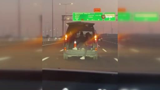 Bursa’da hafif ticarî aracın bagajında bagaj açık şekilde yolculuk yapan şahıs görenleri korkuttu. Ölüme davetiye çıkaran kişi, diğer araç sürücüleri tarafından saniye saniye kaydedildi.