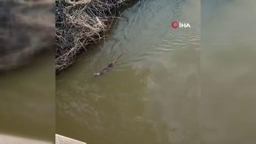 Bursa'nın Karacabey ilçesine bağlı Akçasusurluk mevkiinde bulunan derede su samuru görüntülendi.