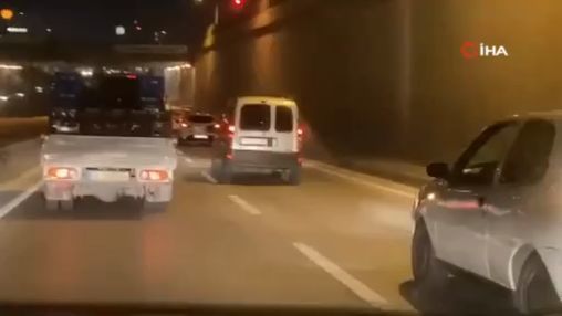 Bursa’da bir düğün konvoyundakiler tehlike saçtı. Tünele giren araçlardan bir anda havaya ateş açılmaya başladı. O anlar bir başka sürücü tarafından kaydedildi.