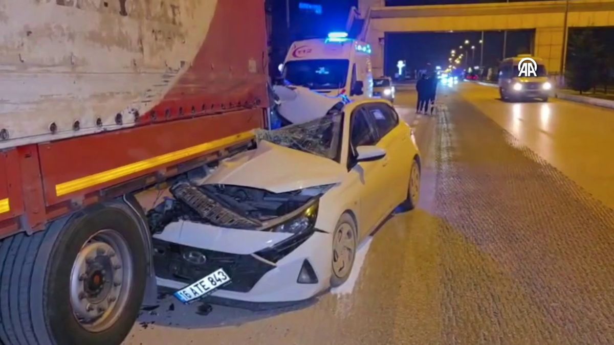 Bursa'nın İnegöl ilçesinde kontrolden çıkıp, park halindeki TIR'a arkadan çarpan otomobilin sürücüsü yaralandı.