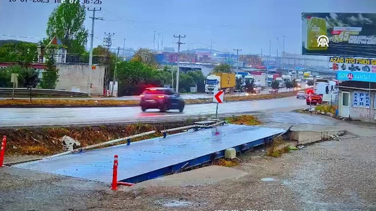 Bursa'nın Gemlik ilçesinde otomobil, yol kenarında park halindeki tır ile elektrik panosuna çarptı. Güvenlik kamerasına yansıyan kazada araç sürücüsü ağır yaralandı.