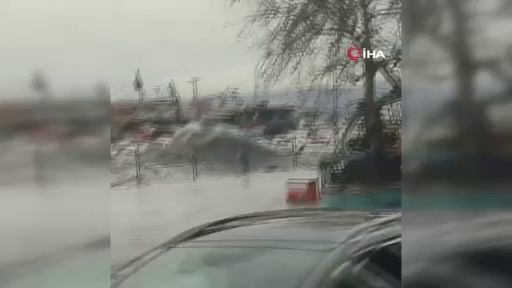 Bursa'nın Gemlik ilçesinde şiddetli fırtına sebebiyle kara ile deniz birleşti. Denizdeki çok sayıda tekne de parçalanarak battı.