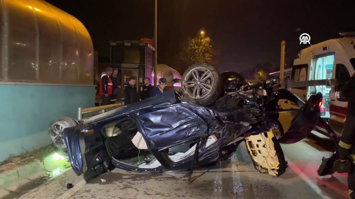 Bursa'da, aşırı hız nedeniyle kontrolden çıkan otomobil önce yol kenarındaki ağaca ardından da metro duvarına çarpıp, takla attı. Kazada, otomobilden fırlayan kadın öldü, 3 kişi de yaralandı. Araçtan çıkarılan yaralılardan biri, kendisine müdahale etmek isteyen sağlık ekiplerine saldırıp kaçtı. Otomobilde tabanca ele geçirilirken, mermilerin ise yola saçıldığı görüldü.