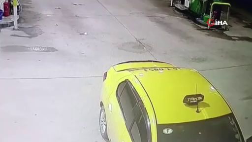Bursa’da gasbedilen taksinin kaçırılma anlarına dair yeni görüntüler ortaya çıktı. Gece saat 02.00 sıralarında yaşanan ve yarım saatlik kovalamacayla sona eren taksi gasbının, benzin istasyonundaki başlangıç anları güvenlik kamerasına yansıdı.
