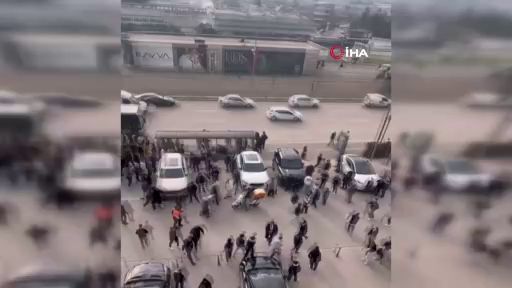 Bursa'da Korupark alışveriş merkezinin otoparkında birbirine giren gençler, herkese korku dolu anlar yaşattı.