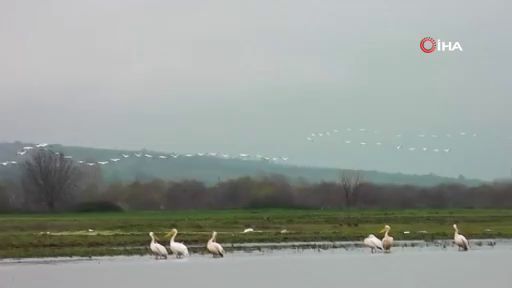 Bursa'nın İnegöl ilçesindeki Boğazköy Barajı, bahar mevsimin gelmesi ile pelikanlara ev sahipliği yapmaya başladı. Göç yolunda mola veren pelikanlar, cep telefonu kamerası ile görüntülendi.