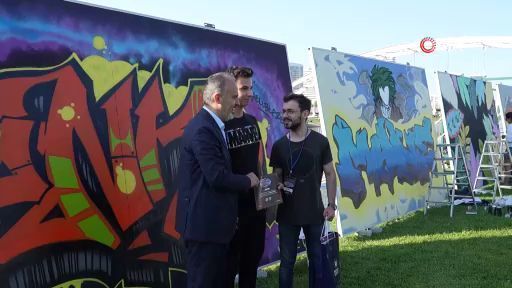 Bursa Büyükşehir Belediyesi tarafından bu sene ikincisi düzenlenen Grafiti Şenliği, profesyonel sanatçıların yanı sıra 7’den 70’e tüm vatandaşların katılımıyla görsel şölene dönüştü. 780 metrekarelik alana kurularak adeta tuvale dönüştürülen panolar, Bursa’nın ana cadde ve meydanlarında sergilenecek.