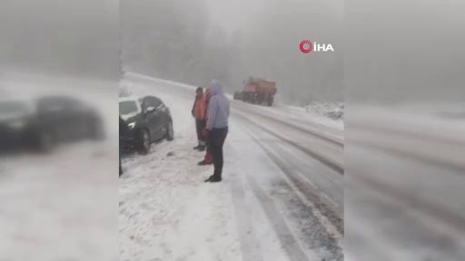 Bursa'nın İnegöl ilçesi ile Kütahya'nın Domaniç ilçesini birbirine bağlayan kara yolunda yoğun kar yağışı sürücülere zor anlar yaşattı.
