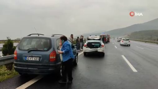 <p>İstanbul- Bursa- İzmir Otoyolu’ndaki kazayı görüp yavaşlayan R.K.’nın kullandığı 34 GRE 712 plakalı otomobile, arkadan gelen başka bir otomobil çarptı. Çarpan otomobilde yaralanan sürücü Tamer Türkmen, eşi Ferah Türkmen (45) ve oğulları Mehmet Türkmen (15) hastaneye kaldırıldı.</p>