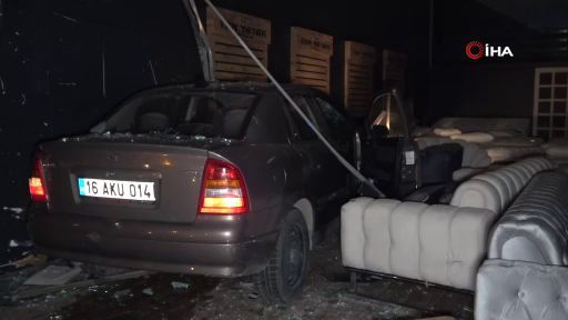 Bursa’da sürücüsünün direksiyon hakimiyetini kaybettiği araç mobilya dükkanına girdi.