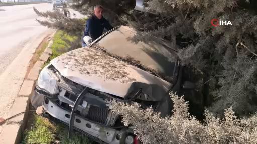 Bursa'da kontrolden çıkan otomobil ağaçlık alana uçtu!