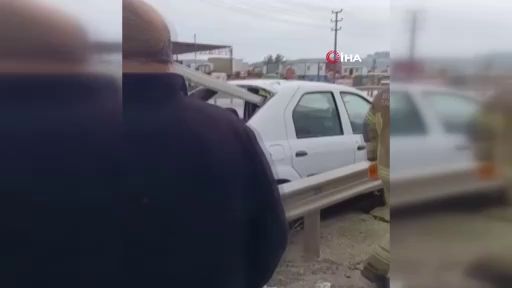 Bursa'da kontrolden çıkan otomobil bariyerlere ok gibi saplandı!