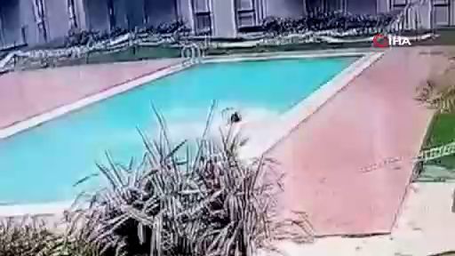 Bursa'da bir kargo çalışanı, ürün teslim etmek için girdiği lüks sitede yüzme havuzuna düştü. O anlar, güvenlik kamerasına yansıdı.