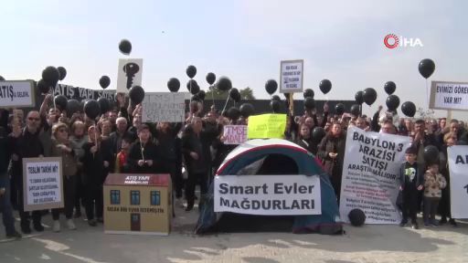 Bursa'da ev hayali kabusa dönen 3 bin 500 aile, şantiye önünde eylem yaptı. Mağdur aileler, gökyüzüne siyah balonlar bıraktı.