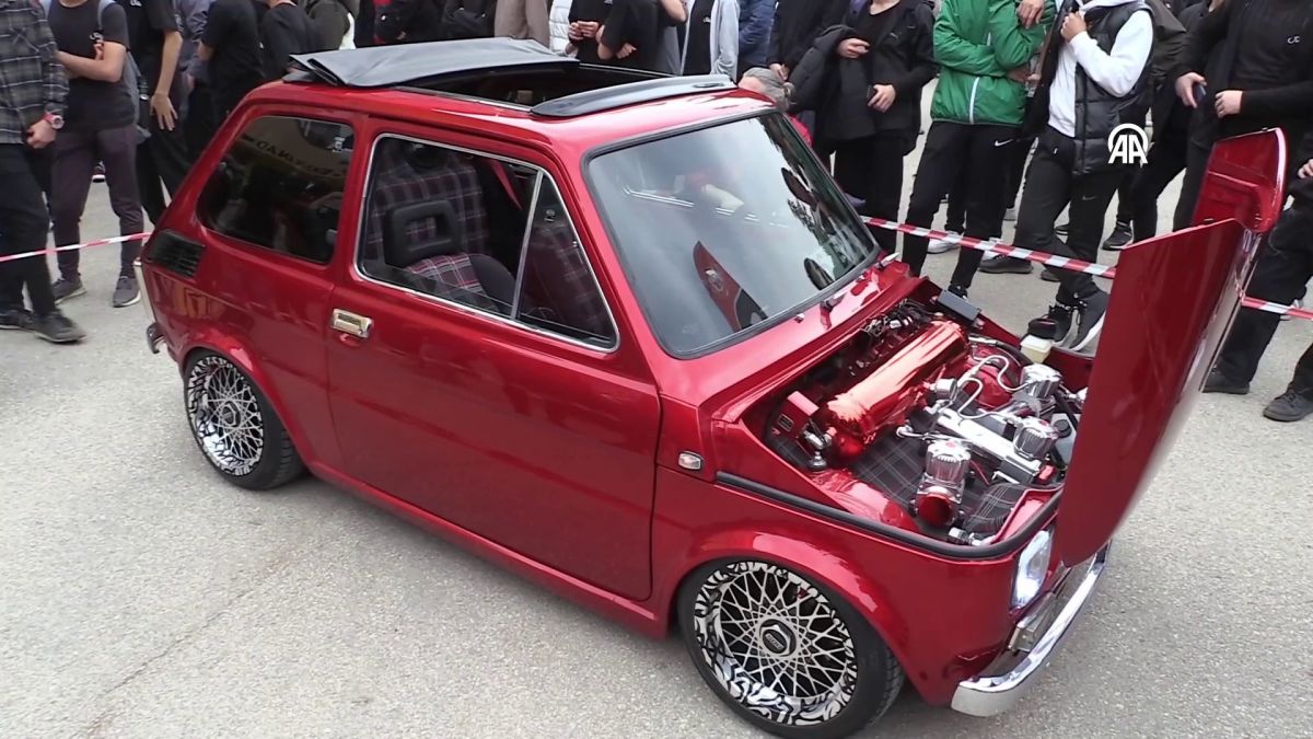 Modifiyeli araçlar üzerindeki teçhizatları inceleyen öğrenciler, Türkiye'nin otomobili Togg ile bol bol fotoğraf çektirdi.