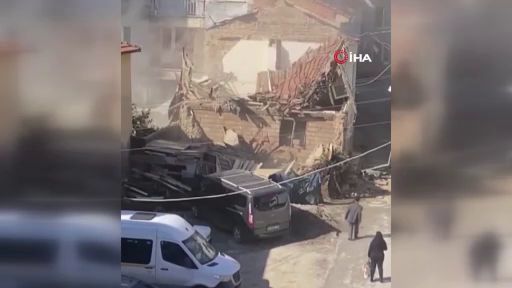 Bursa'nın Gemlik ilçesinde bulunan Balıkpazarı Keklik Sokak'ta yer alan metruk bir bina kendiliğinden çöktü.