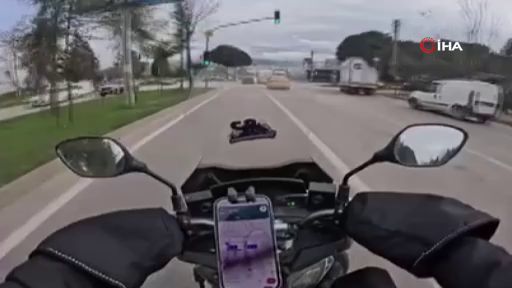 Bursa’da kayda alınan anlar, trafikte dikkat ve refleksin önemini bir kez daha gözler önüne serdi. Motosiklet sürücüsünün önüne çıkan minibüsü fark etmesiyle manevra yapması kask kamerasına yansıdı.