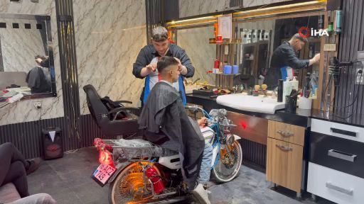 Bursa'nın İznik ilçesinde mesleği ile hobisini bir araya getiren Çakır’ın kendi iş yerinde sergilediği motosiklet görünümlü berber koltuğu, dükkâna gelen müşterilerin ilgisini üzerine topluyor.