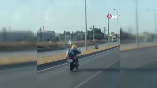 Bursa'da motosikleti yan kullanan sürücü tehlike saçtı