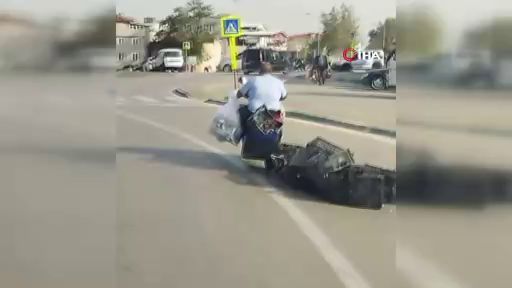 Bursa’da bir sürücü motosikletinin arkasına plastik kasalar bağlayıp yolculuk yaptı. O anlar cep telefonlarına yansıdı.