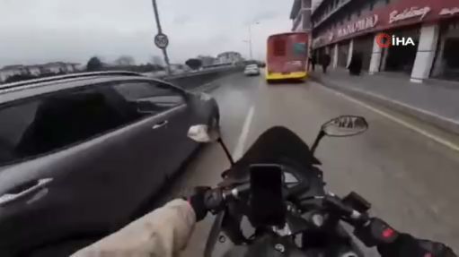 Bursa'da motosikletli sürücünün ölümden döndüğü anlar kask kamerasına yansıdı.