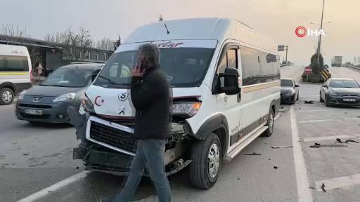 Bursa'nın İnegöl ilçesinde öğrenci servisi ile otomobilin çarpıştığı kazada 6'sı öğrenci 10 kişi yaralandı. Kaza anı bir iş yerinin güvenlik kamerasına saniye saniye yansıdı.