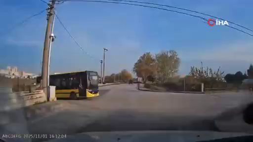 Bursa’da ailesiyle birlikte ilerleyen otomobil sürücü, yola çıkan otobüsle kafa kafaya çarpışmamak için direksiyonu kırdı. Ölümle burun buruna gelinen o anlar saniye saniye araç kamerasına yansıdı.