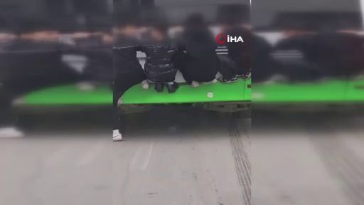 Bursa’nın Yıldırım ilçesinde seyir halindeki özel halk otobüsünün arkasına tutunan 4 lise öğrencisi, hem kendi canlarını hem de trafikteki diğer sürücüleri tehlikeye attı. Tehlikeli anlar, çevredeki bir vatandaşın cep telefonu kamerasına yansıdı.