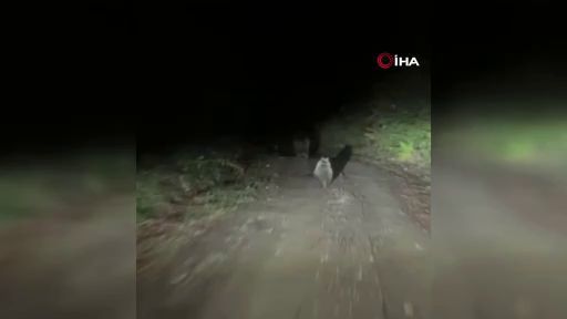 Bursa'nın İnegöl ilçesinde, orman yolunda otomobilin önüne çıkan yavru ile anne ayı, 2 arkadaş tarafından cep telefonu kamerasıyla görüntülendi.