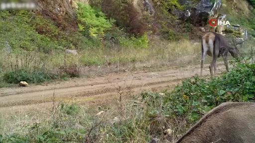 Bursa'da otlayan kızılgeyikler fotokapanla görüntülendi