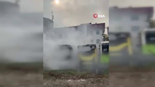 Bursa'da bakım için bırakılan otobüsler, alev topuna döndü. İtfaiye ekipleri yangını söndürmek için büyük çaba sarf ederken, çıkan dumanlar kentin birçok noktasından görüldü.