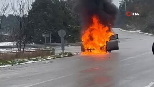 Bursa'da seyir halindeki otomobil alev alev yandı.