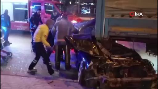 Bursa'nın Osmangazi ilçesinde hafif ticari araçla çarpışan otomobil, park halindeki tırın altına girdi. Kazada otomobil sürücüsü ağır yaralandı.