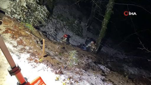 Bursa'nın İnegöl ilçesinde meydana gelen kazada kontrolden çıkan otomobil, 100 metre yükseklikten uçuruma yuvarlandı. Kazada 2'si ağır 5 kişi yaralanırken, yaralıların kurtarılma anı kameraya yansıdı.