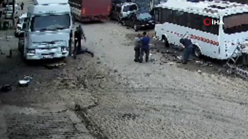 Bursa'nın İnegöl ilçesinde tamir için bekletilen tır, sürücüsüz hareket etti. 2 kişinin saniyelerle ölümden döndüğü anlar ise kameralara yansıdı.
